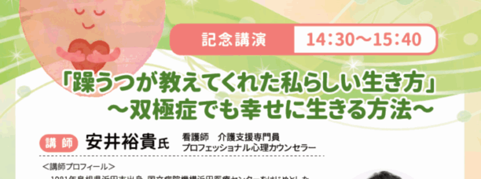 令和7年度 岡山県精神保健福祉大会が開催されるのでご案内いたします。 『「躁うつが教えてくれた私らしい生き方」~双極症でも幸せに生きる方法~』をテーマに、記念講演も開かれます。 PDFを印刷していただき、広報などにご利用 […]